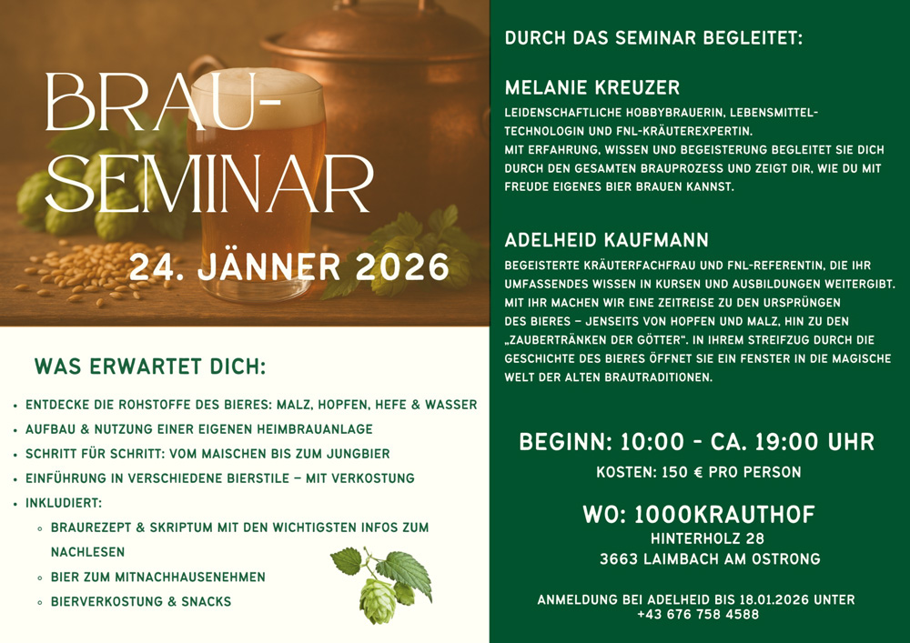 Es wird vor Ort Biere gebraut und verkostet. Jeder Teilnehmer bekommt Bier zum mit Nachhause nehmen.